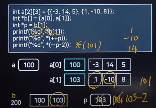 printf("%d", *b[1]); // 1, b[1] 이 가리키는 공간의 있는 값