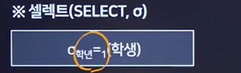 SELECT : 렐레이션에서 조건을 만족하는 수평적 부분 집합(튜플)을 구하기 위한 연산을 말한다