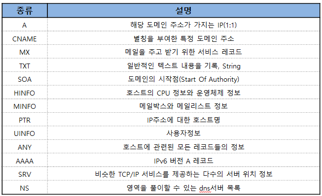 잘 정리되어 있는 사이트 : 🌐 DNS 레코드 종류 ★ 완벽 정리