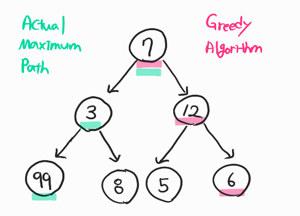 위에서 언급했듯이, 그리디 알고리즘은 '최적의 해'를 찾을 수 없을 가능성이 다분하다.