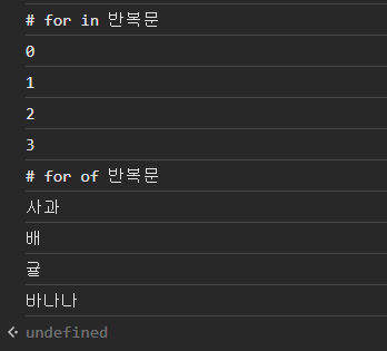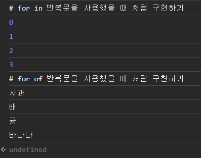 이전에 반복문 부분에서 살펴보았던 다음과 같은 코드를 배열의 forEach 메소드를 사용하는 형태로 변경해주세요.