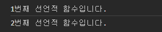 또한 선언적 함수도 입력한 순서대로 생성되고 같은 이름이라면 덮어쓰므로 코드를 실행했을 때 "2번째 선언적 함수입니다"를 출력하는 모습을 볼 수 있다.