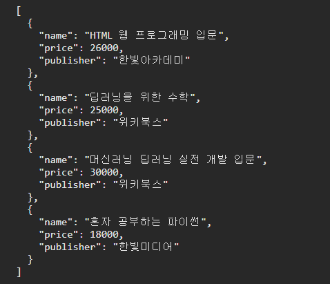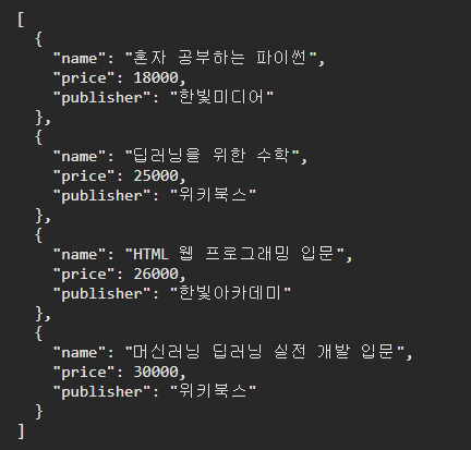 코드를 실행하면 가격(price)으로 정렬한 결과를 출력한다.