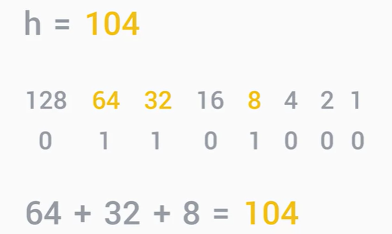 How to Count in Binary: Binary is the fundamental communication block of computers, but it's used to represent more than just text and images. It's used in many aspects of computing like computer networking or security. When we count binary, which only uses zero and one, we convert it to a system that we can understand, decimal. In the decimal system, there are 10 possible numbers you can use ranging from zero to nine. We use the decimal system to help us figure out what bits our computer can use. We can represent any number in existence just by using bits. Let's consider these numbers: 128, 64, 32, 16, 8, 4, 2, and 1. Hopefully, you'll see that each number is a double of the previous number going right to left. If you add them all up, you get 255. That's kind of weird. I thought we could have 256 values for a byte. Well, we do. The zero is counted as a value, so the maximum decimal number you can have is 255. If you add these numbers up, you'll get a decimal value. The letter h in binary is 01101000. Now, let's look at an ASCII to decimal table. The letter h in decimal is 104. Now, let's try our conversion chart again. 64 plus 32 plus 8 equals 104.