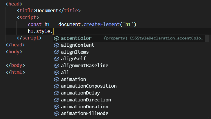 이는 웹 브라우저의 자바스크립트가 "당연히 있겠지"라고 전제하고 만든 속성이다. 우리가 head 요소과 body 요소 내부에 만든 다른 요소들은 다음과 같은 별도의 메소드를 사용해서 접근한다.