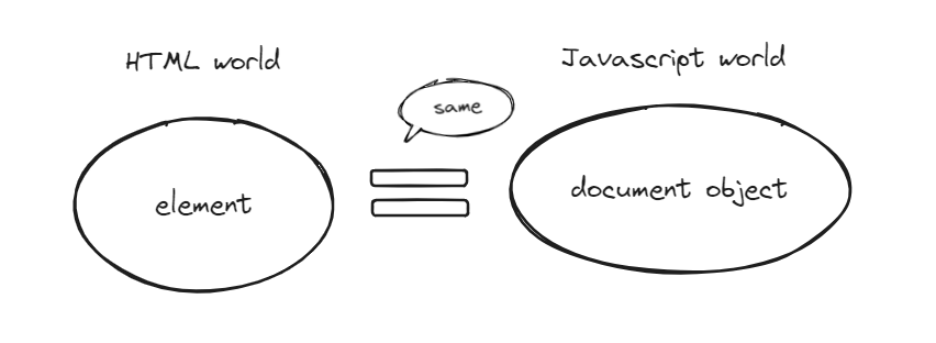 HTML 페이지에 있는 html, head, body, title, h1, div, span 등을 HTML 언어에서는 요소(element)라고 부른다. 그리고 자바스크립트에서는 이를 문서 객체(document object)라고 부른다. 따라서 '문서 객체를 조작한다'는 말은 'HTML 요소들을 조작한다'는 의미이다.