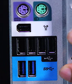 So, let's take a look at the back of our computer again. You'll see lots of connectors or ports. We can plug in different objects like a mouse, keyboard, and a monitor. These are known as peripherals. A peripheral is basically anything that you connect to your computer externally that adds functionality. You probably used USB devices before. USB, also known as Universal Serial Bus devices are the most popular connections for our gadgets. USB has gone through lots of changes since inception. You most commonly encounter USB 2.0, USB 3.0, and 3.1 in today's system. Here's a quick rundown of the different versions. USB 2.0 transfers speeds of 480 megabits per second, USB 3.0 transfers speeds of five gigabits per second, USB 3.1 transfers speeds of 10 gigabits per second.