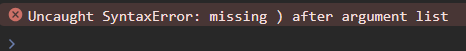 코드를 실행하고 콘솔을 보면 곧바로 Syntax Error라는 오류가 발생한 것을 확인할 수 있다. 구문 오류라는 의미이다.