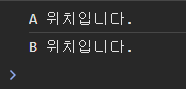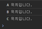 첫번째 코드는, "A 위치입니다." 와 "B 위치입니다."만 출력하는 것을 볼 수 있다. return 키워드를 사용해 함수를 벗어났으므로 "C 위치입니다."라는 글자를 출력하지 않는 것이다.