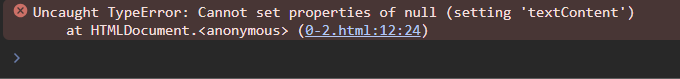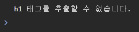 다음 코드는 querySelector() 메소드로 문서 객체를 추출한 뒤 textContent 속성에 글자를 할당하는 코드이다. 그런데 body 태그 내부에 h1 태그가 없다. 따라서 예외가 발생한다.