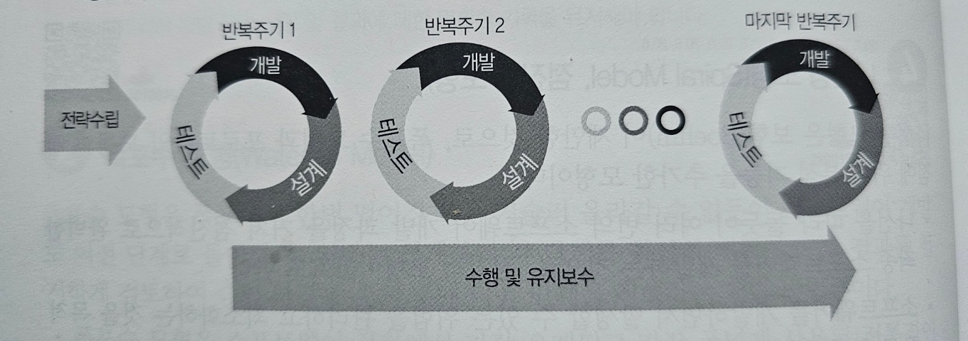 - 애자일 모형은 스프린트(Sprint) 또는 이터레이션(Iteration)이라고 불리는 짧은 개발 주기를 반복하며, 반복되는 주기마다 만들어지는 결과물에 대한 고객의 평가와 요구를 적극 수용한다.