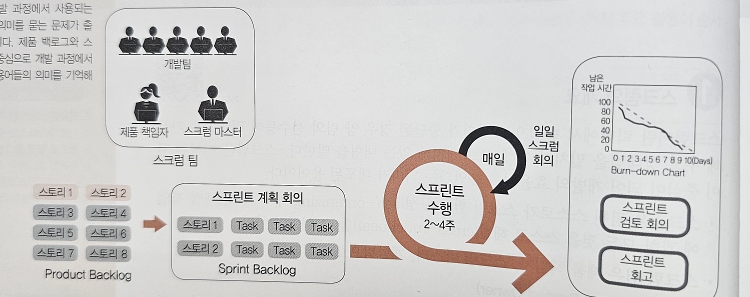 - 스크럼 팀은 제품 책임자, 스크럼 마스터, 개발팀으로 구성된다.