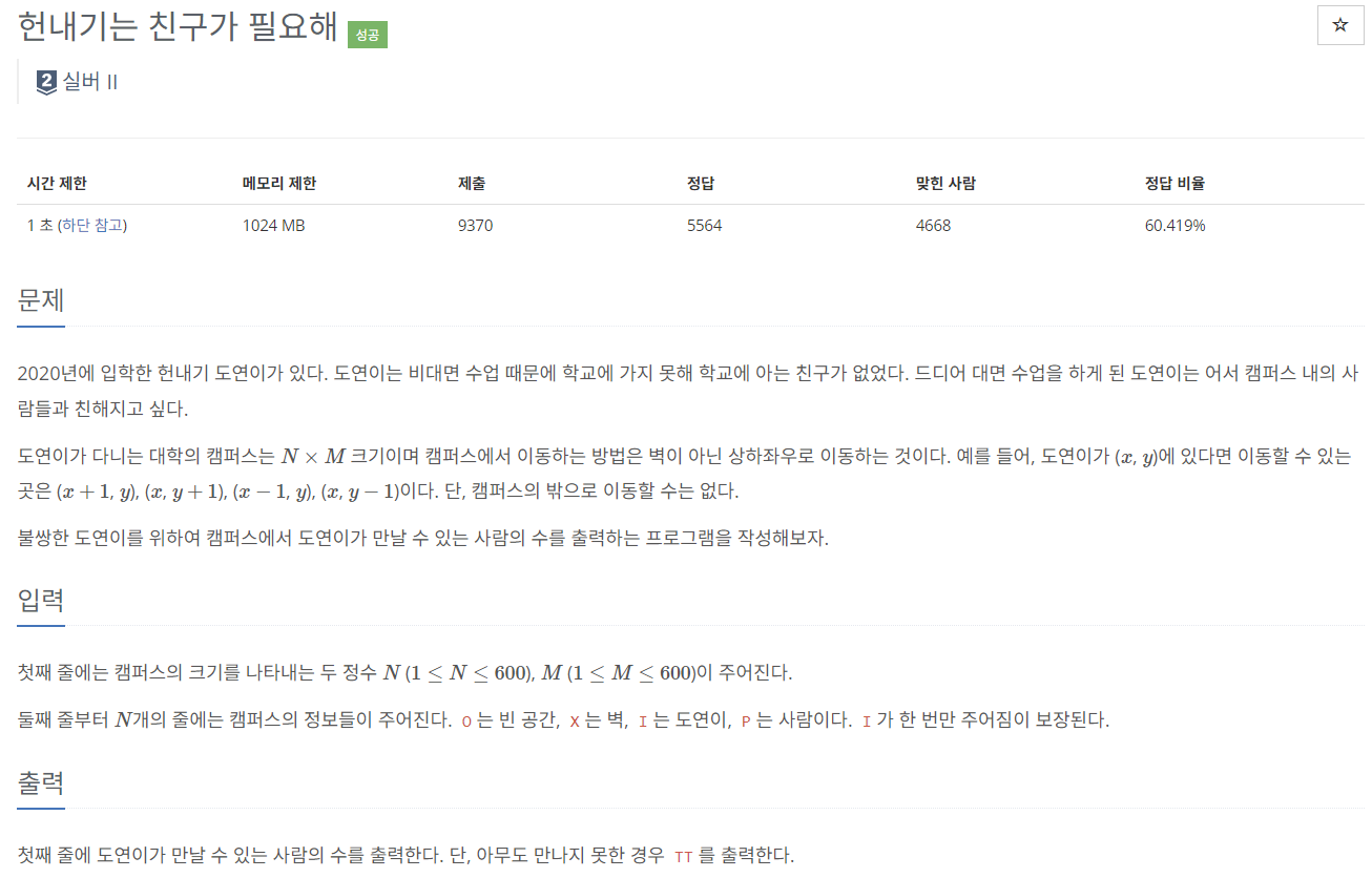 21736번: 헌내기는 친구가 필요해