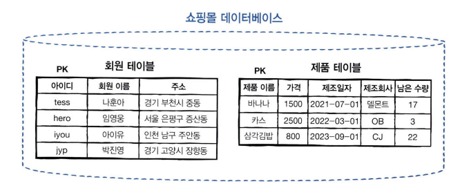 - 기본 키는 열에 지정하며, 각 행을 구분하는 유일한 값이다.